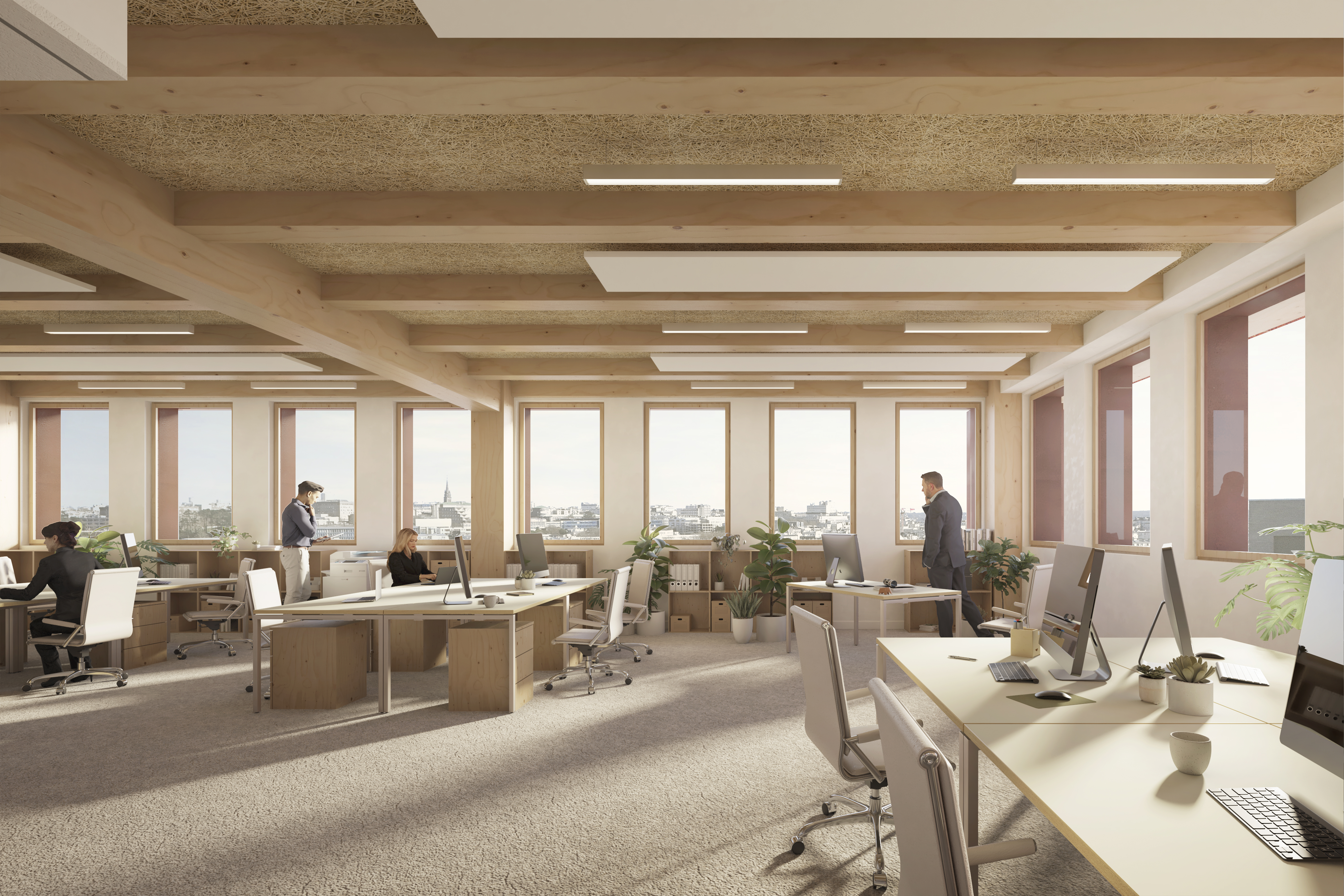 Le bâtiment, conçu en structure mixte bois-béton, vise une labellisation BREEAM. Il intègre des matériaux biosourcés et bas carbone et a été pensé pour garantir confort acoustique, qualité de la lumière naturelle et maîtrise des consommations énergétiques, tout en permettant une évolution des espaces selon les besoins des occupants.